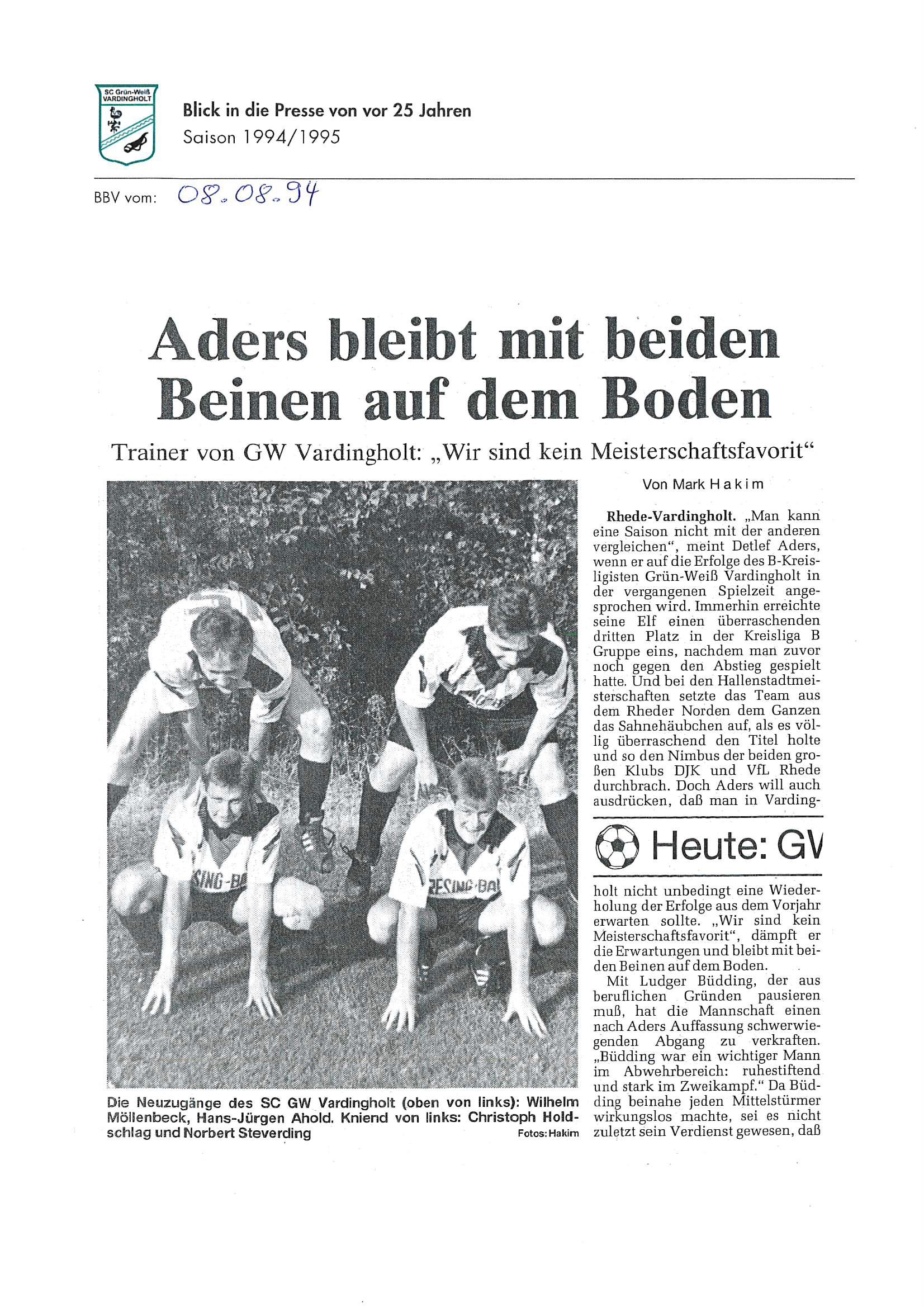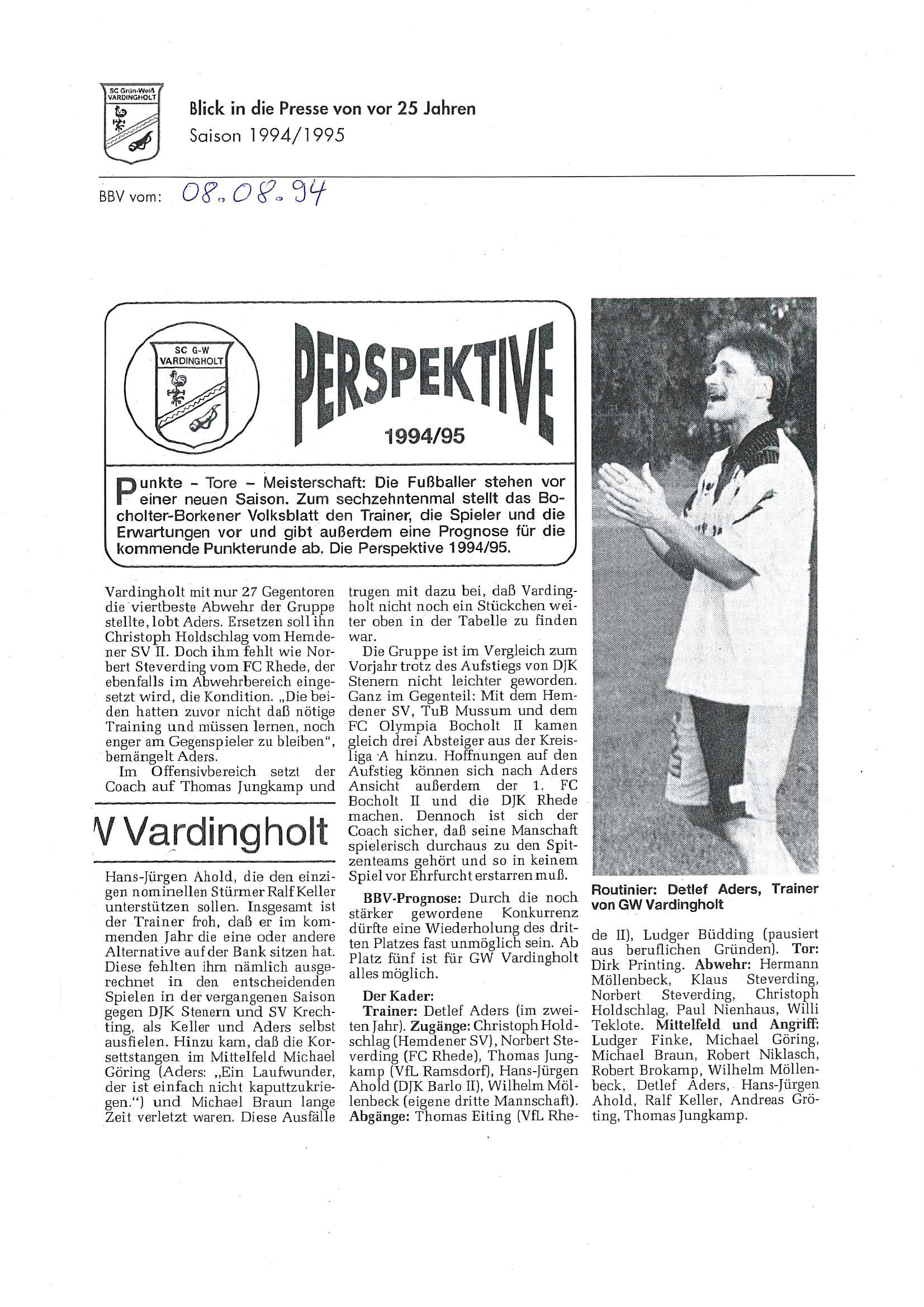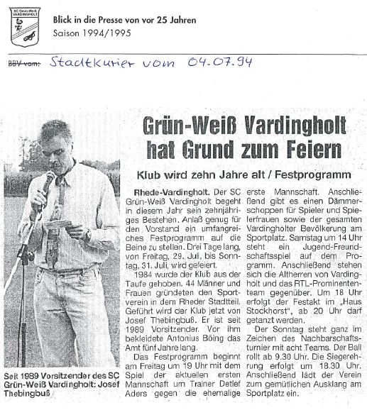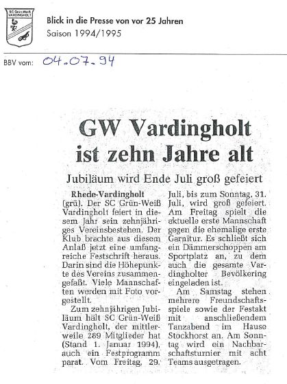 Diese Saison begann mit den Feiern und Aktivitäten zum 10jährigen Vereinsjubiläum 1994, berichtet auch über „aufmüpfige“ Vardingholter und das ein oder andere mehr auf und neben dem Weg zu den Titeln.