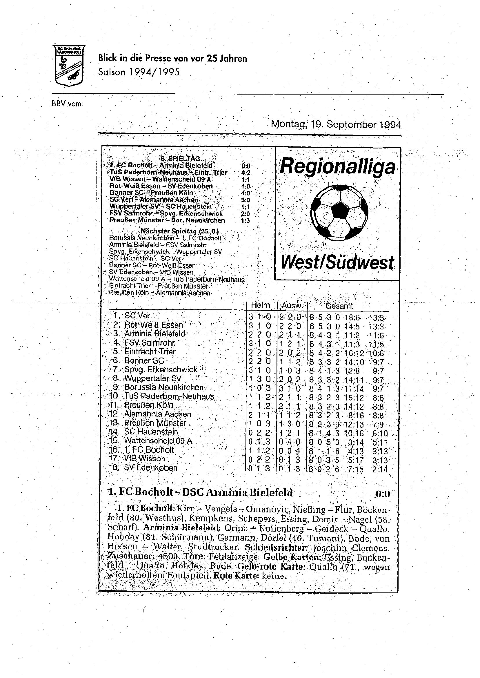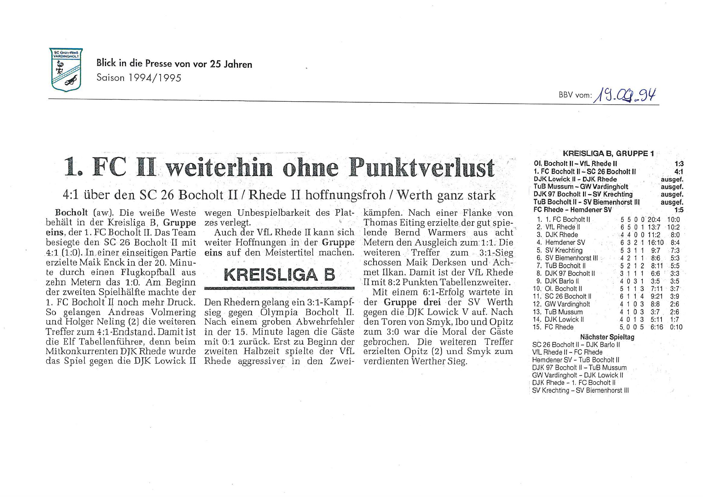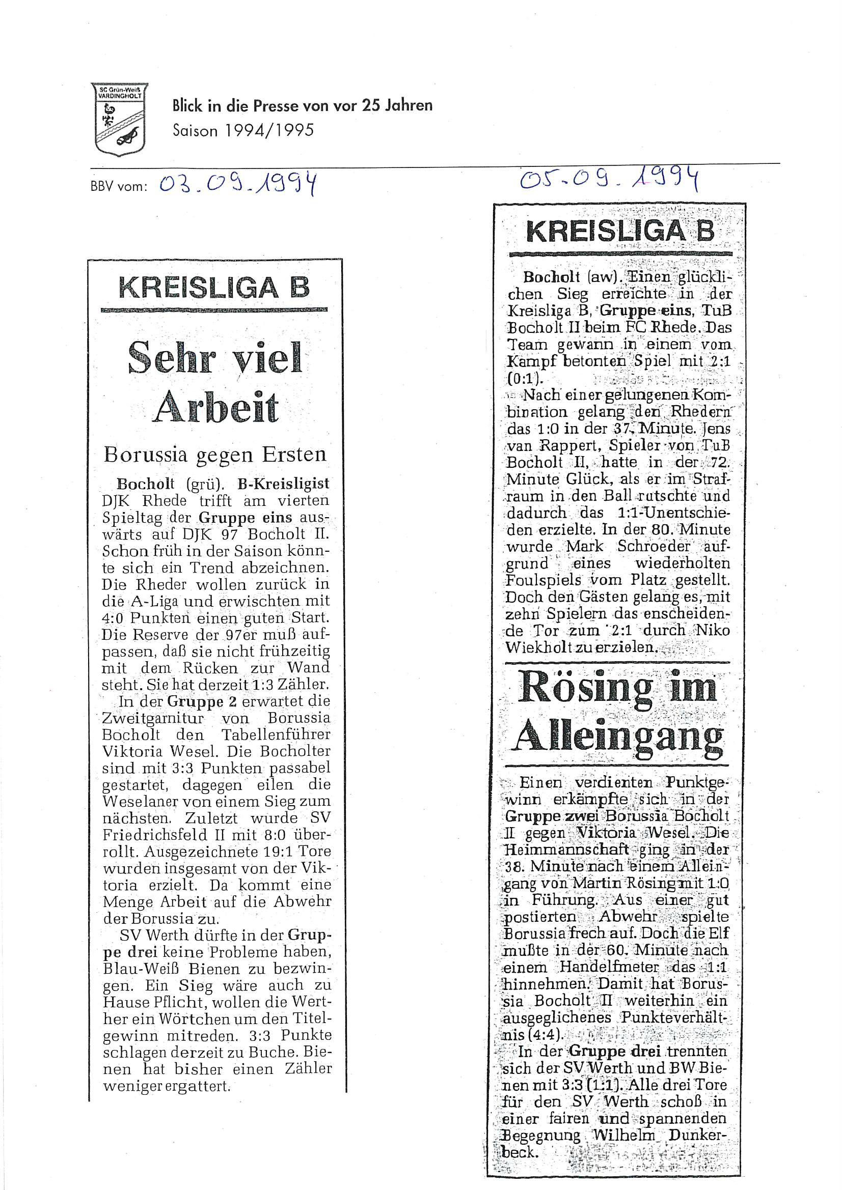 Die Aufstiege waren ein Resultat langer, harter und kontinuierlicher Arbeit und eines großen Zusammenhaltes im Verein seit Saisonstart im Juli 1994. Der Presserückblick möchte den Beteiligten, Zeitzeugen aber auch allen anderen interessierten Grün-Weiß Mitgliedern und Fans von jung bis alt einen Rückblick auf diese einzigartige Saison 1994/1995 geben.