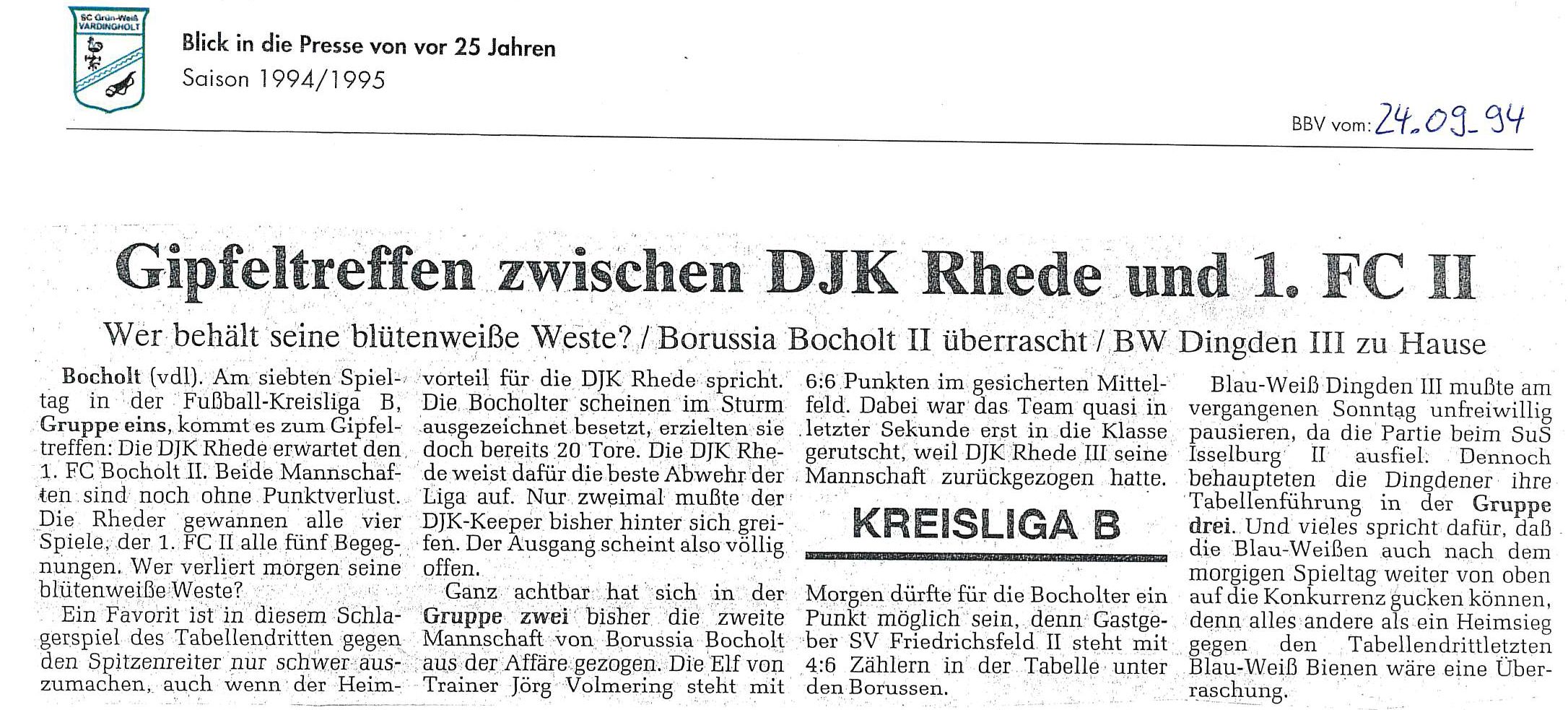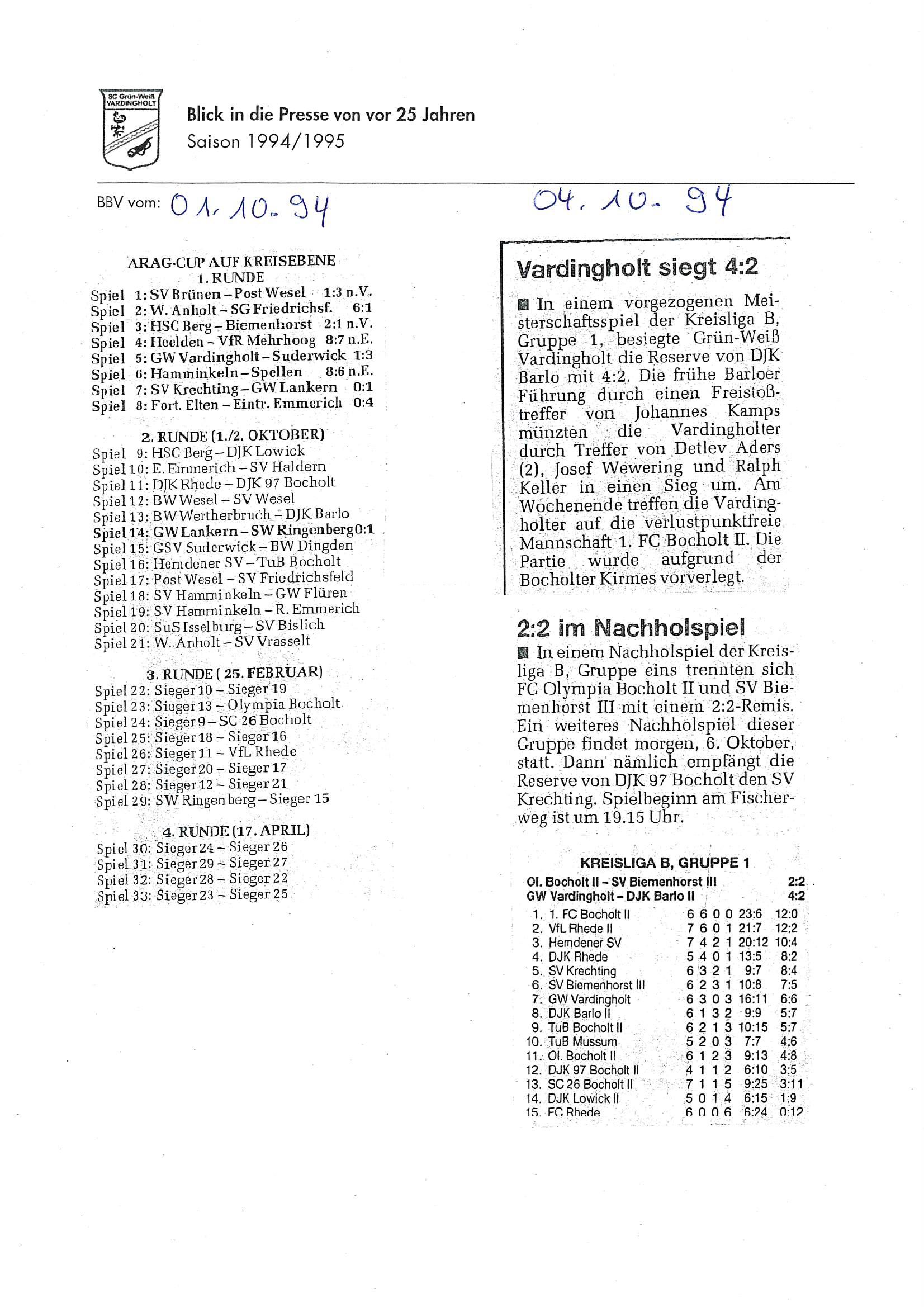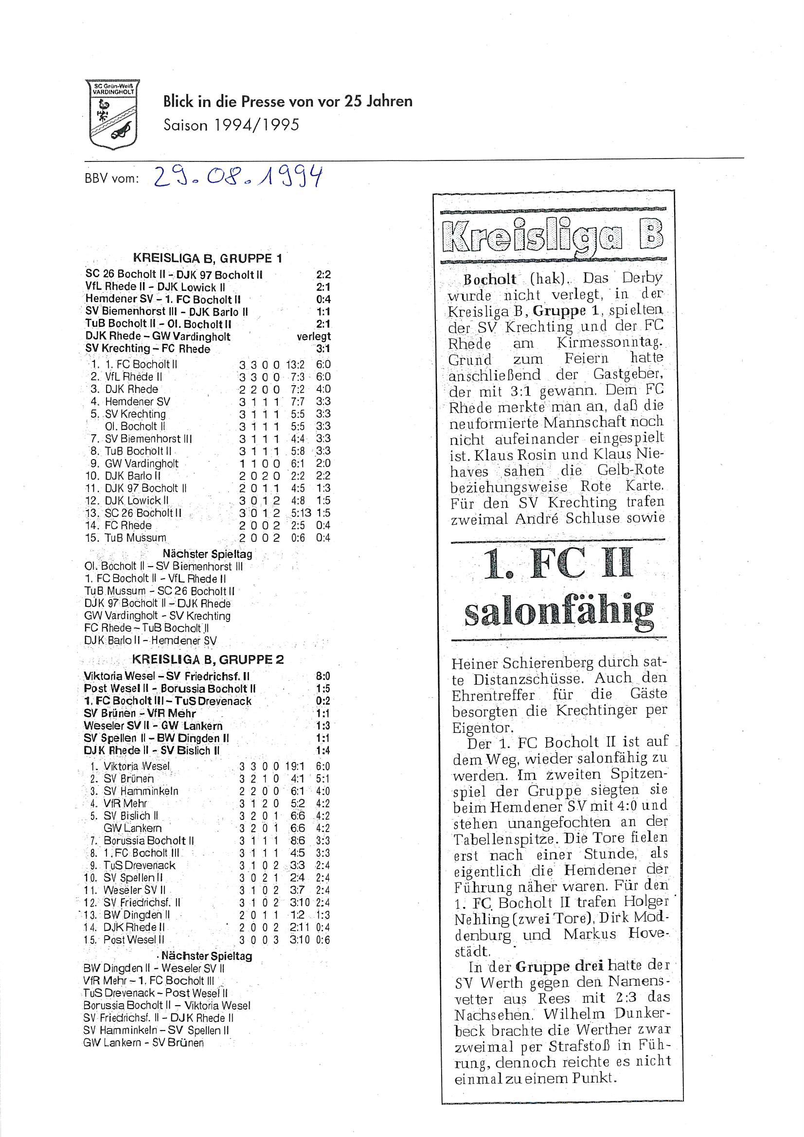 Die Aufstiege waren ein Resultat langer, harter und kontinuierlicher Arbeit und eines großen Zusammenhaltes im Verein seit Saisonstart im Juli 1994. Der Presserückblick möchte den Beteiligten, Zeitzeugen aber auch allen anderen interessierten Grün-Weiß Mitgliedern und Fans von jung bis alt einen Rückblick auf diese einzigartige Saison 1994/1995 geben.