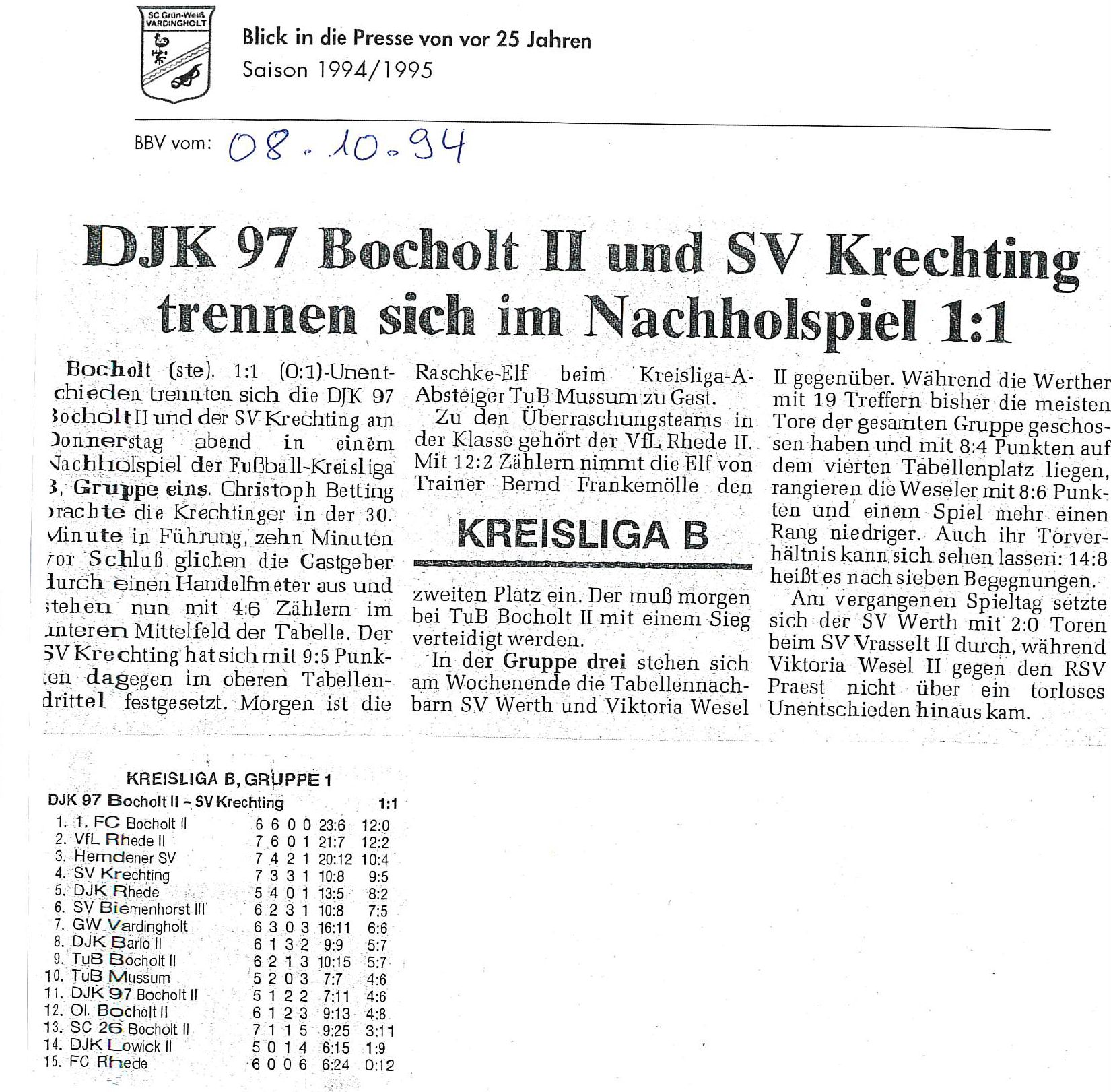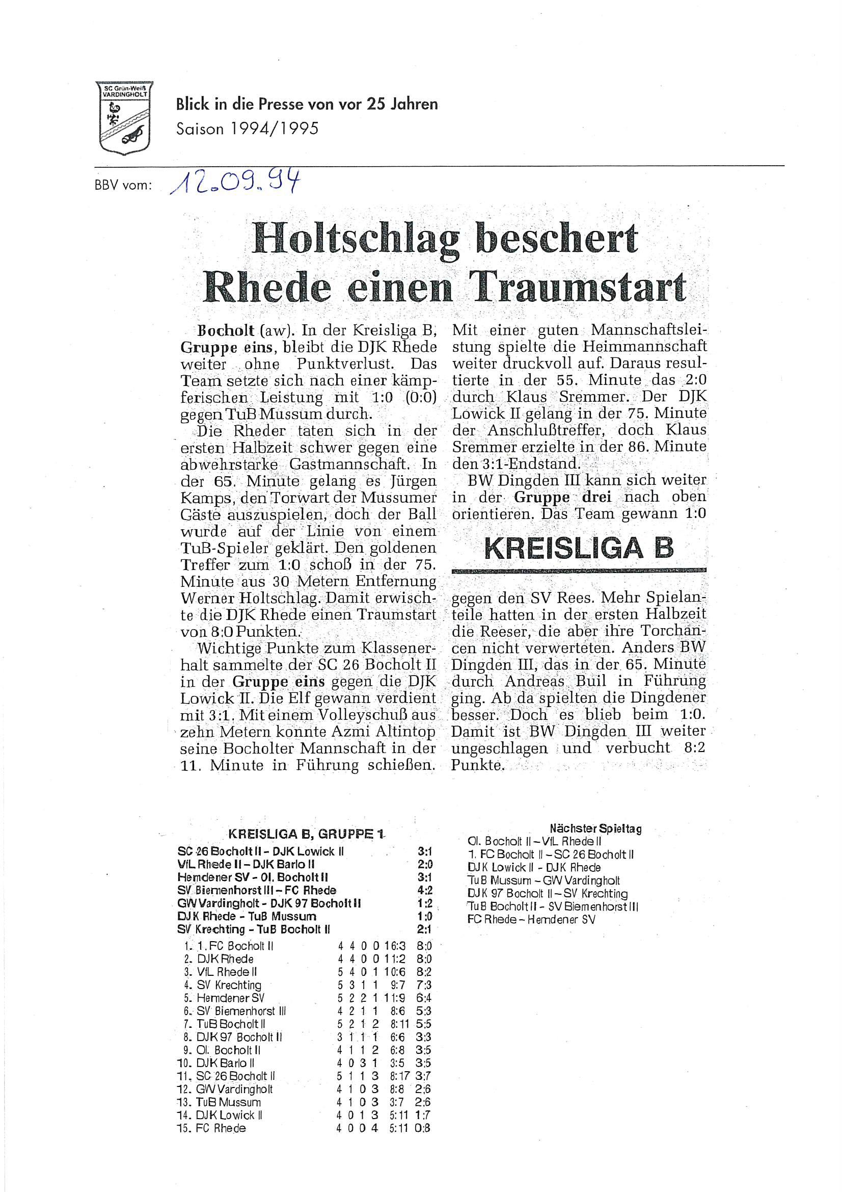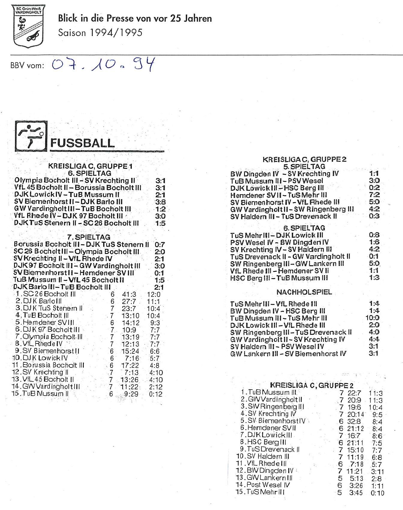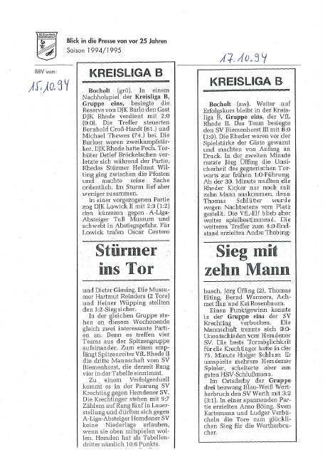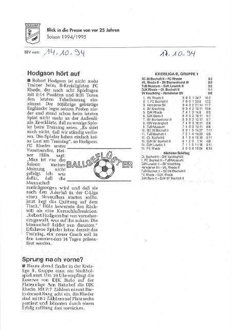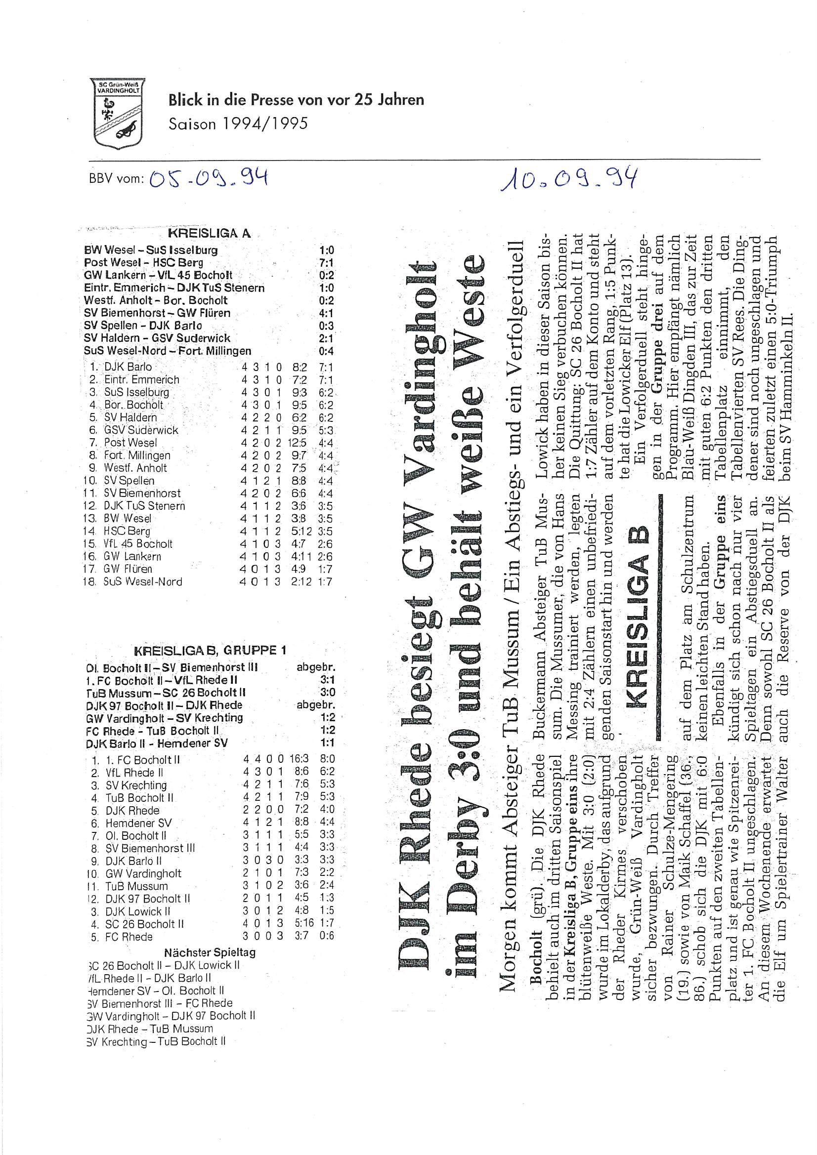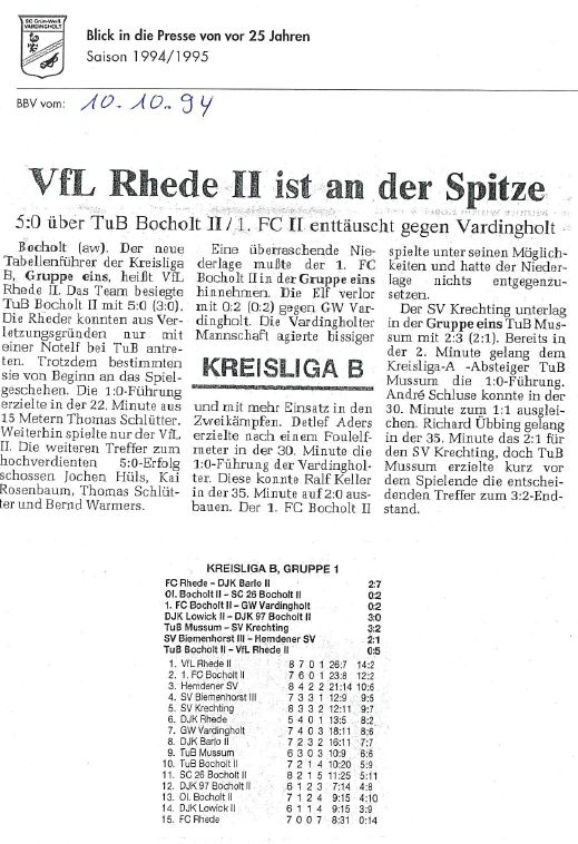 Diese Saison begann mit den Feiern und Aktivitäten zum 10jährigen Vereinsjubiläum 1994, berichtet auch über „aufmüpfige“ Vardingholter und das ein oder andere mehr auf und neben dem Weg zu den Titeln.
